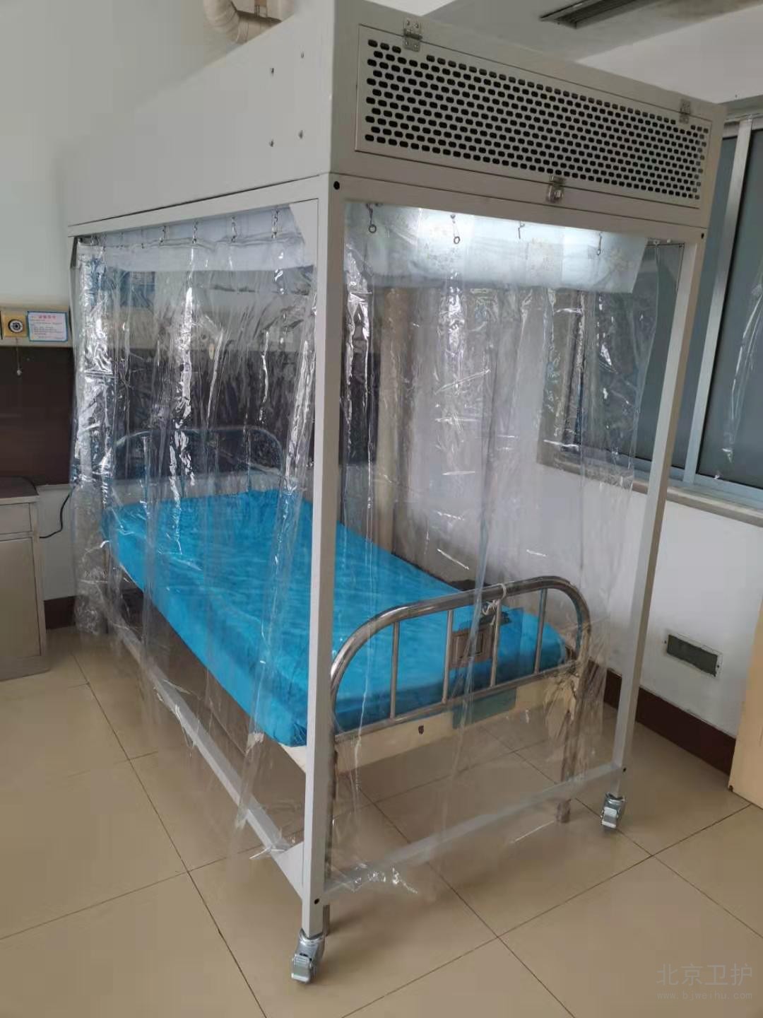 層流消毒床罩運用垂直層流的潔凈送風(fēng)形式,使罩內(nèi)空氣潔凈度達到百級的潔凈環(huán)境,同時罩內(nèi)區(qū)域維持微正壓,阻止外部污染空氣進入罩內(nèi),起到無菌隔離的作用。