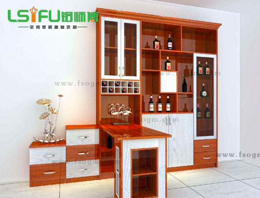 這是家裝比較流行的最新款全鋁屏風(fēng)柜,整體采用鋁合金材料、看起來大方、整潔,有著簡約而不簡單的家裝效果。首先是裝飾性方面,擺放了全鋁屏風(fēng)酒柜之后,整個(gè)空間都變得有色彩、豐富了空間的氣氛。再是功能豐富,在屏風(fēng)酒柜架子上面還可以擺放一些收藏品,格子擺放不同的花瓶、酒瓶等物品,下層還可以放置其他用品,整體采用同一顏色、看起來更有統(tǒng)一性等功效。