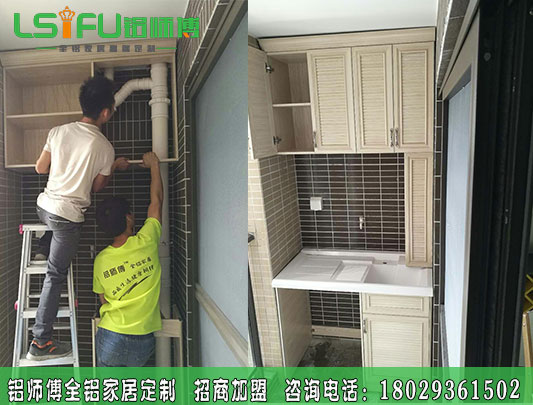 鋁師傅全鋁家居浴室儲物浴柜定制安裝現(xiàn)場圖