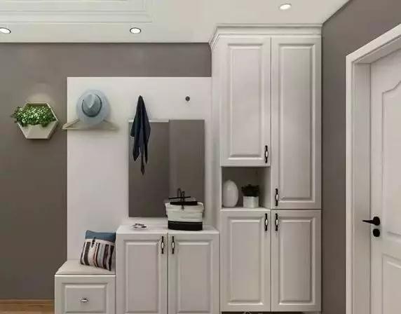 門廳鞋柜恰好能裝下當(dāng)季鞋履,換鞋凳的抽屜可以放一些零碎物品,而下方懸空部分則可以換平時(shí)常穿的鞋子,方便快捷。