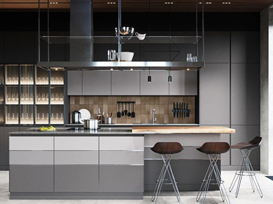 全鋁小吧臺(tái)作為隔斷,既能區(qū)分空間,又能承擔(dān)更多的功能,可以對(duì)飲小酌或是與家人聊天。