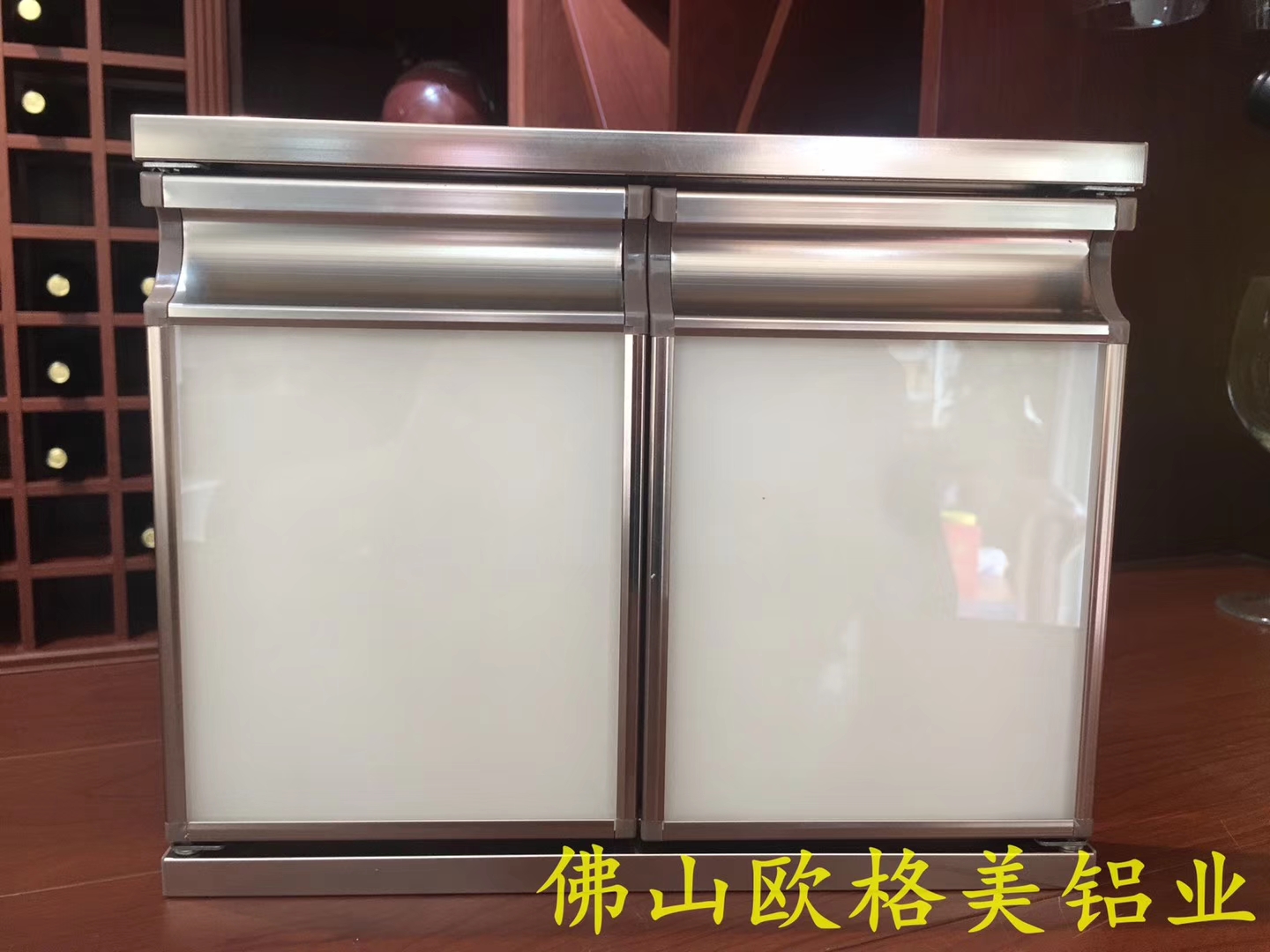 這種帶外框的晶鋼櫥柜門是帶32外框,采用7字形或一字形上下頂,用5mm鏍絲固定,用帶鐵片的大磁吸, 開啟不裝合頁鉸鏈。