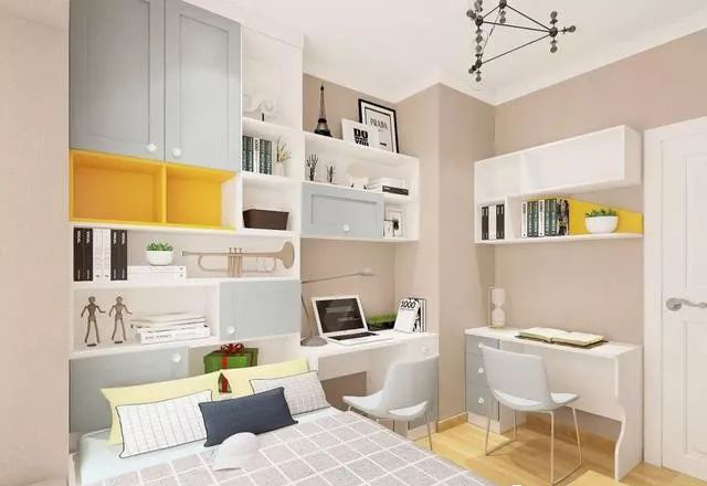 只要伴侶不介意,戶型比較緊湊、房間不夠用的家庭,其實(shí)利用臥室的某角落,也足夠打造出功能齊全的工作區(qū)!工作和生活越來越緊密,書房和臥室的界限也正在模糊~兒童房建議可以將收納、休息、學(xué)習(xí)區(qū)集中起來,再通過家具去形成分區(qū),這樣子孩子們才是真正有自己的小天地,并且井井有條。