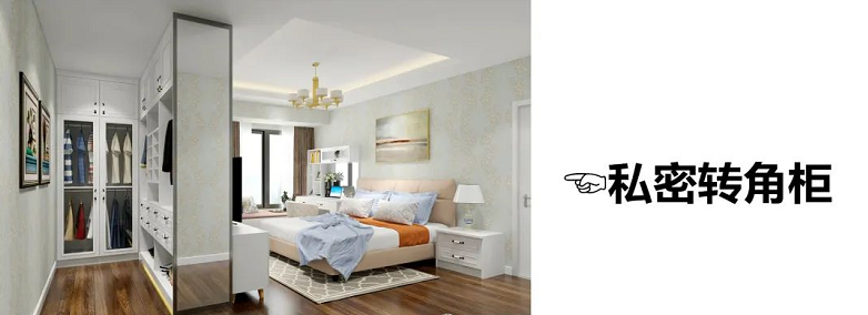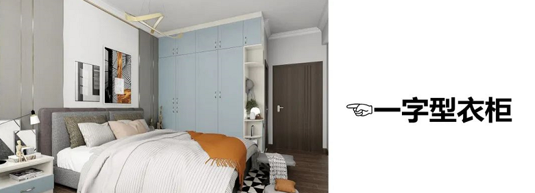 與入戶門平行的墻面,打造一字型衣柜的布局,適合大多數(shù)臥室的戶型。市面上一字型衣柜非常多,如何能在衣柜上再演變出許多新功能衣柜。既能滿足我們的衣柜收納各種需求,還能讓空間內(nèi)顏值倍增。如果衣柜到床的距離大于80cm,可以設(shè)計(jì)轉(zhuǎn)角衣柜,利用死角空間,收納能力MAX!