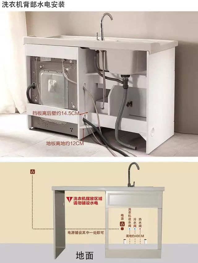 最后,許多朋友想了解陽臺洗衣柜的管線預(yù)埋該怎么做,給大家一個水電安裝示意圖: