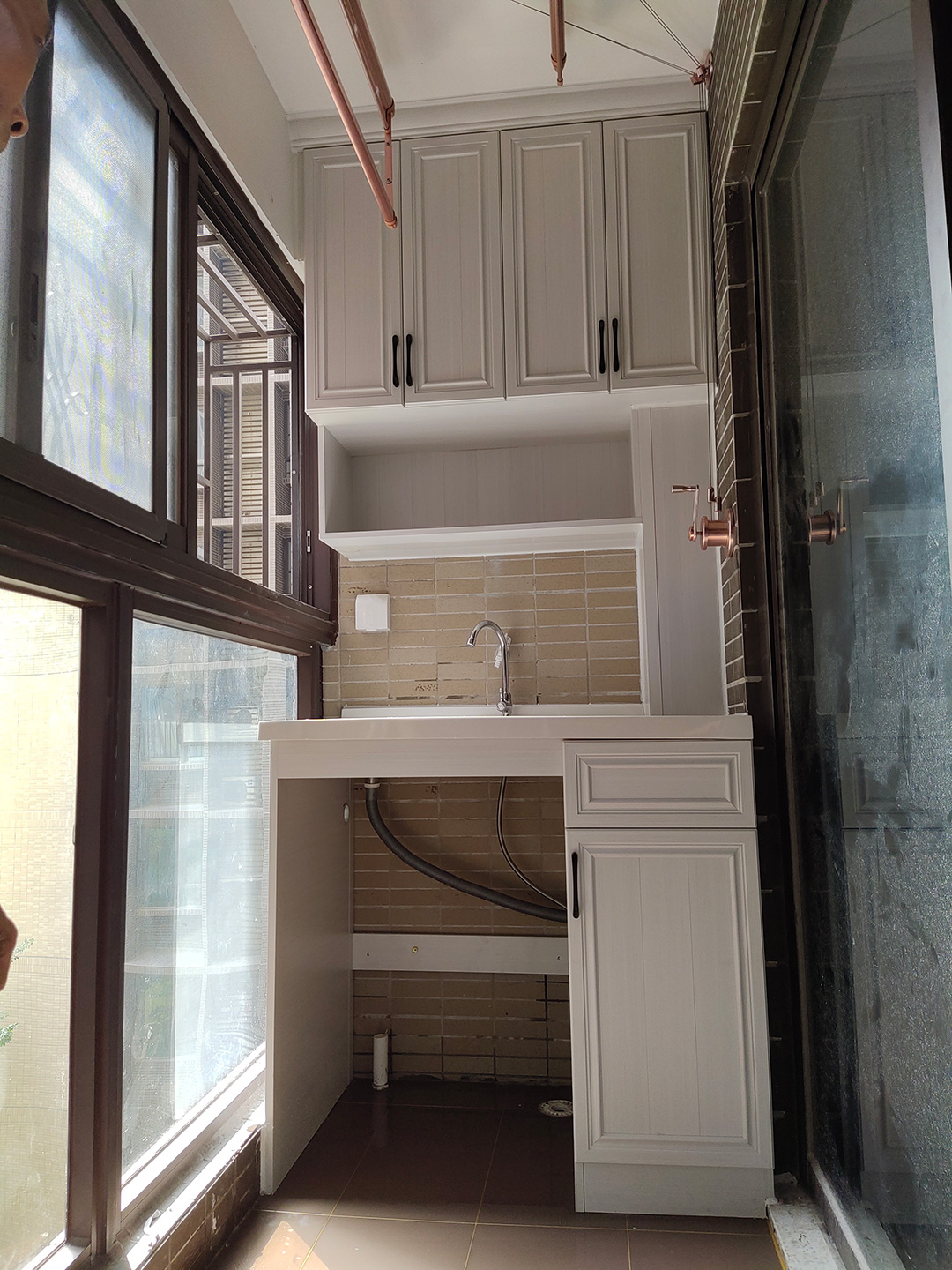 定制的洗衣柜,與陽臺尺寸完全匹配
