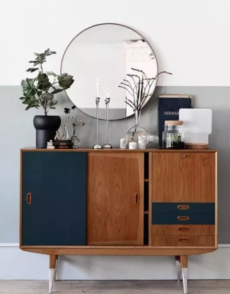 中古風(fēng)最常見的裝飾就是各種邊柜的搭配,邊柜搭配綠植、裝飾畫、擺件,能創(chuàng)造出文雅的感覺。