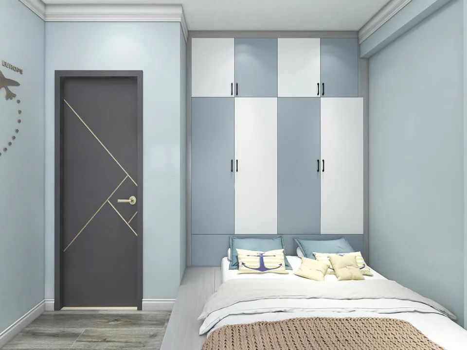 對于兒童房來說,可以選擇一些亮麗、清新的色彩作為衣柜門,比如藍色、綠色等,搭配卡通范的壁紙、墻貼,更有活力。