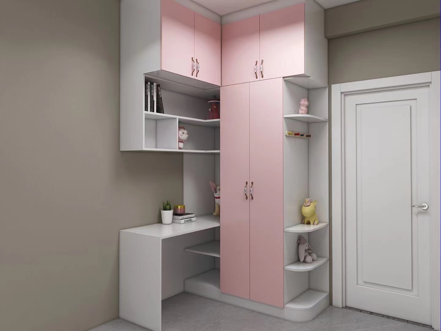 書柜+寫字臺(tái)書桌是學(xué)齡期兒童房必備,書桌上方可以做上隔板或吊柜,增添儲(chǔ)物能力,書桌的一邊加上柜子。書桌上方的吊柜,可以選擇用玻璃柜門,既可以避免落灰的問題,想要拿東西的時(shí)候,也更容易找到。