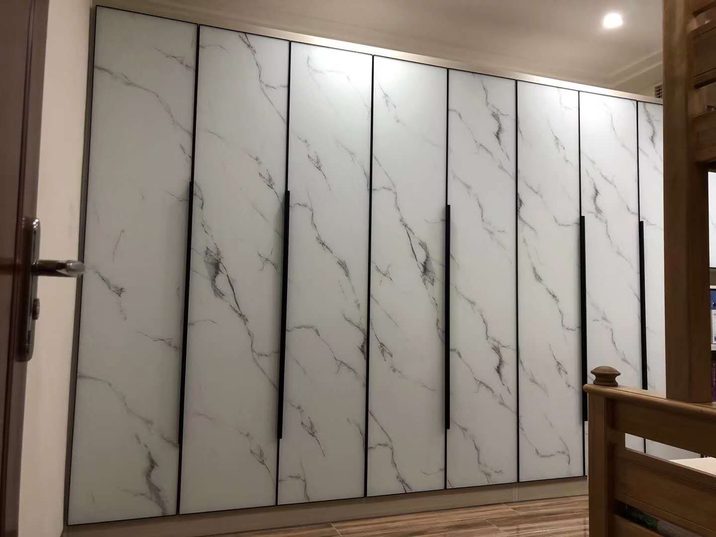 3、石材紋理,輕奢之王。石材肌理的衣柜面板也是近些年火起來的,很適合輕奢風裝修的家。