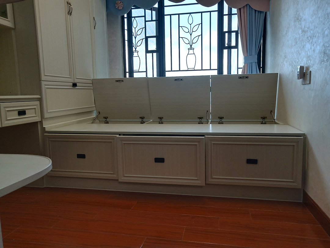抽屜與上翻結(jié)合設(shè)計(jì)也被經(jīng)常用到,靠床的里面設(shè)計(jì)成上翻,靠外邊設(shè)計(jì)成抽屜,小編比較喜歡這種,過季棉被不用的可以放側(cè)翻榻榻米下邊,當(dāng)季的衣物可以放抽屜。