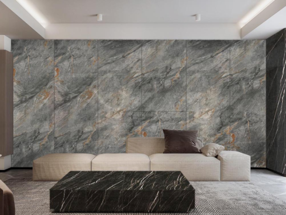 大規(guī)格的意義,一方面作為墻面裝飾少拼接更美觀,更重要的是,足夠大的規(guī)格還能用作餐桌、茶幾、廚房臺面材料。