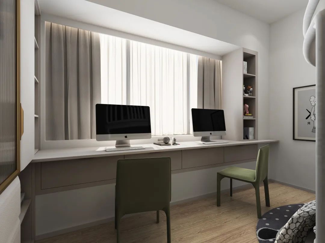 ②兩側(cè)根據(jù)空間和需求,可做書柜/儲(chǔ)物柜/衣柜;