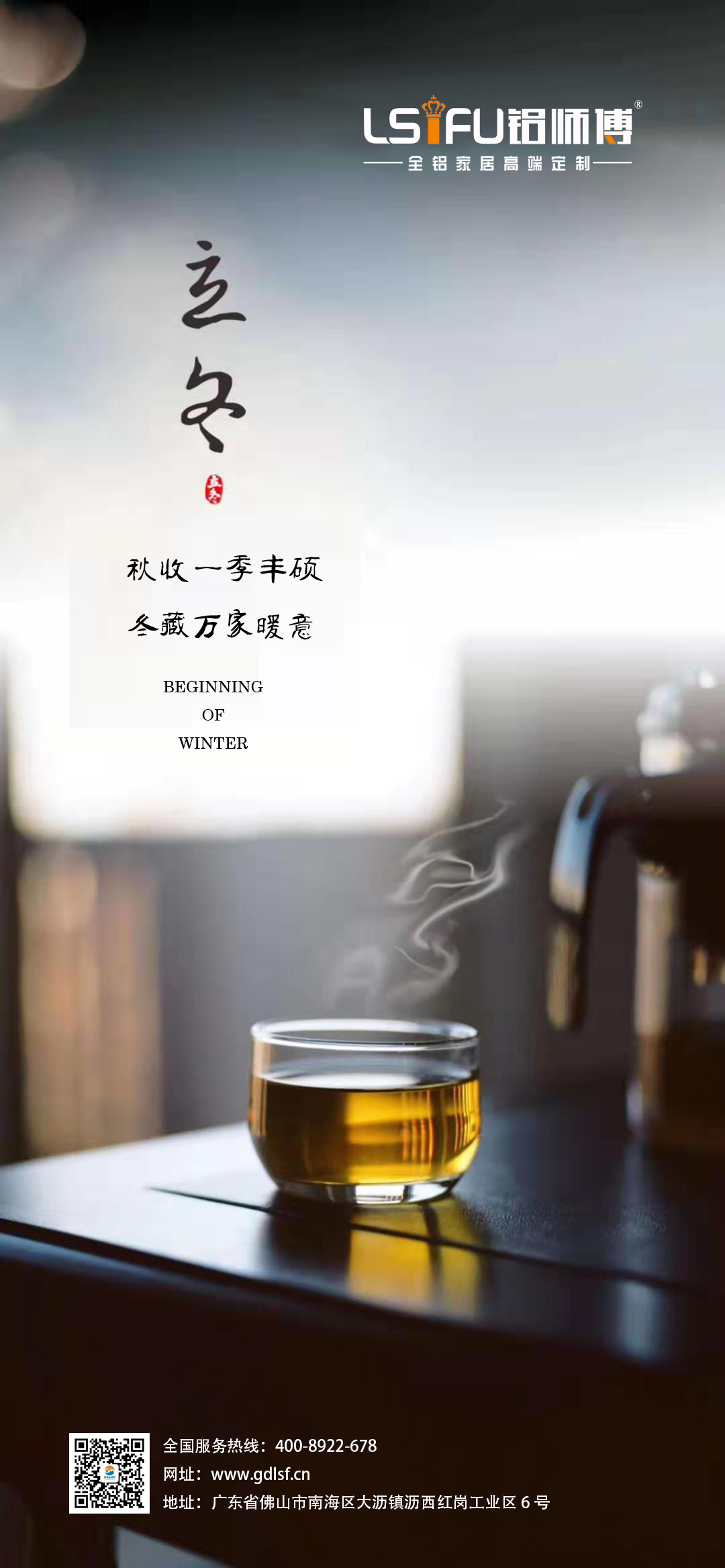 秋光散盡寒意濃,恰逢今日已立冬。雖然佛山的11月還艷陽高照,路上的行人也都還穿著短袖,但早晚確實有些涼意了。鋁師傅全鋁家居祝大家都有一個溫暖的健康環(huán)保家居生活,整個冬天心里都暖暖的!年底裝修選鋁師傅全鋁家具,安裝結構簡單、綠色環(huán)保零甲醛、特強抗菌無異味、全能防火防水防蟲蛀、緊密牢固美觀耐用50年、不霉變不開裂,款式多樣,品質(zhì)保證,家裝好選擇!