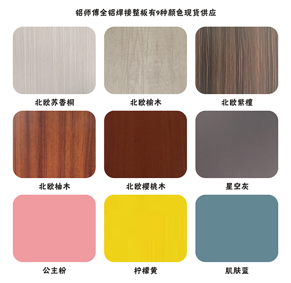 鋁師傅全鋁焊接整板的6大主色是北歐書香桐、北歐榆木、北歐紫檀、北歐櫻桃木、北歐柚木和星空灰。