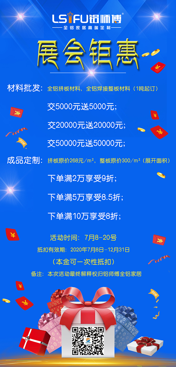 大瀝鳳池全鋁家居展會圓滿結(jié)束,這段時間辛苦大家了,感謝各位新老客戶對鋁師傅的支持,展會期間如有招呼不周,請各位老板多多包涵!活動繼續(xù)!精彩繼續(xù)!歡迎大家移步鋁師傅工廠了解咨詢?nèi)X家居!