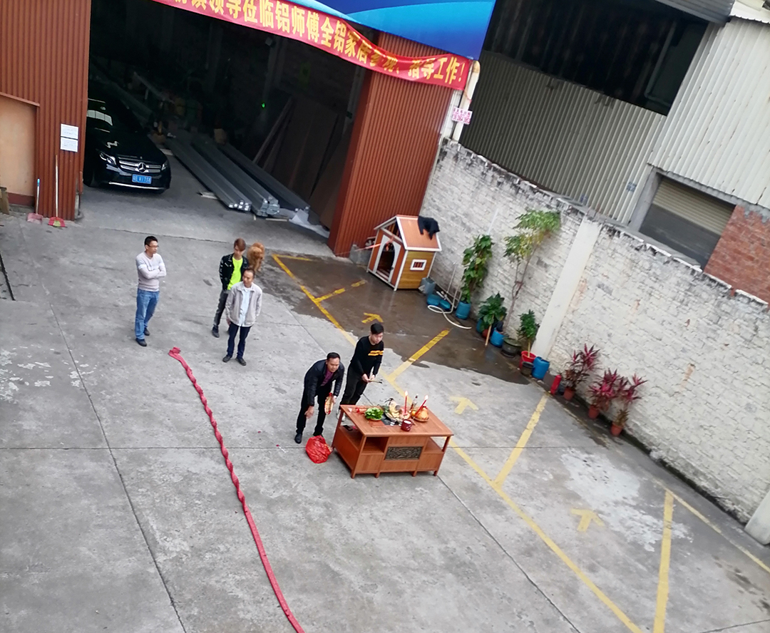 2021年農(nóng)歷正月十六辰時(shí)八點(diǎn)十八分歐格美鋁業(yè)、鋁師傅全鋁家居舉行開張開業(yè)儀式—拜神、點(diǎn)香、放鞭炮。