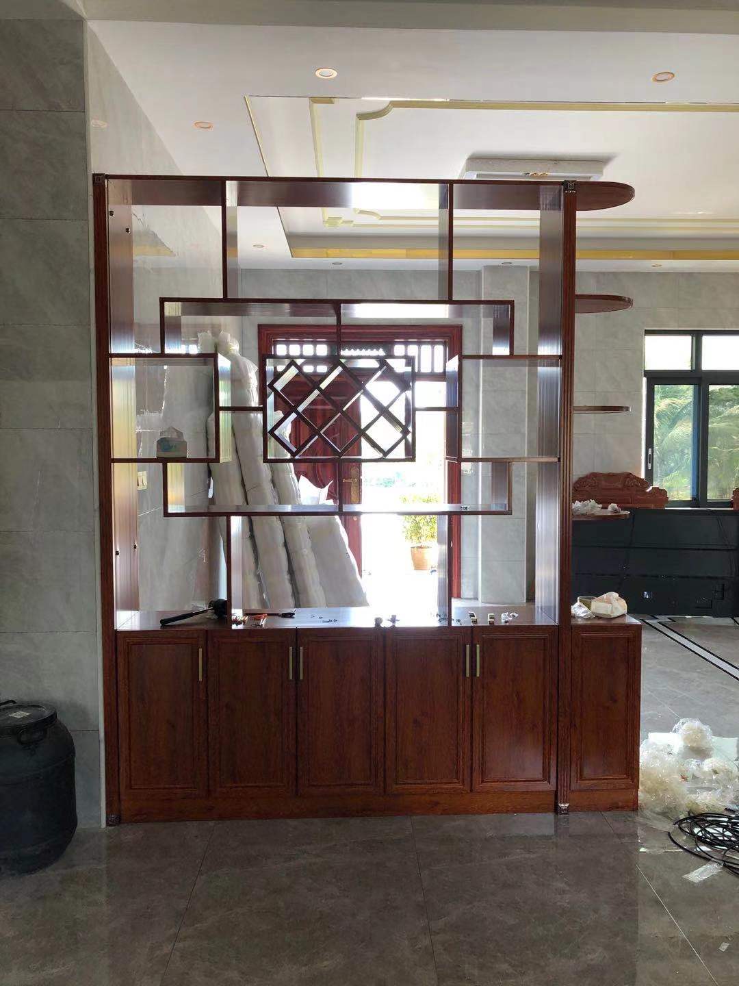 這是2樓的屏風(fēng)設(shè)在大廳中間,到頂設(shè)計(jì),上下都打了拉爆固定,與1樓同色,也是起隔斷作用。