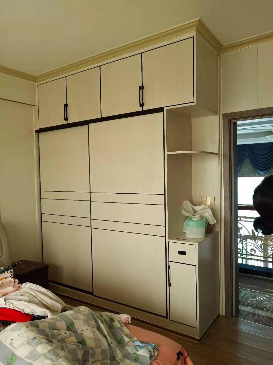 一樓主人房平開門衣柜,柜體是北歐書香桐,門板是今年新款顏色北歐松木灰,極簡門板搭配黑色一字拉手,穩(wěn)重大氣,靠門的一邊做了兩個(gè)開放格,放相框和常用的東西,整體不壓抑,更活潑。