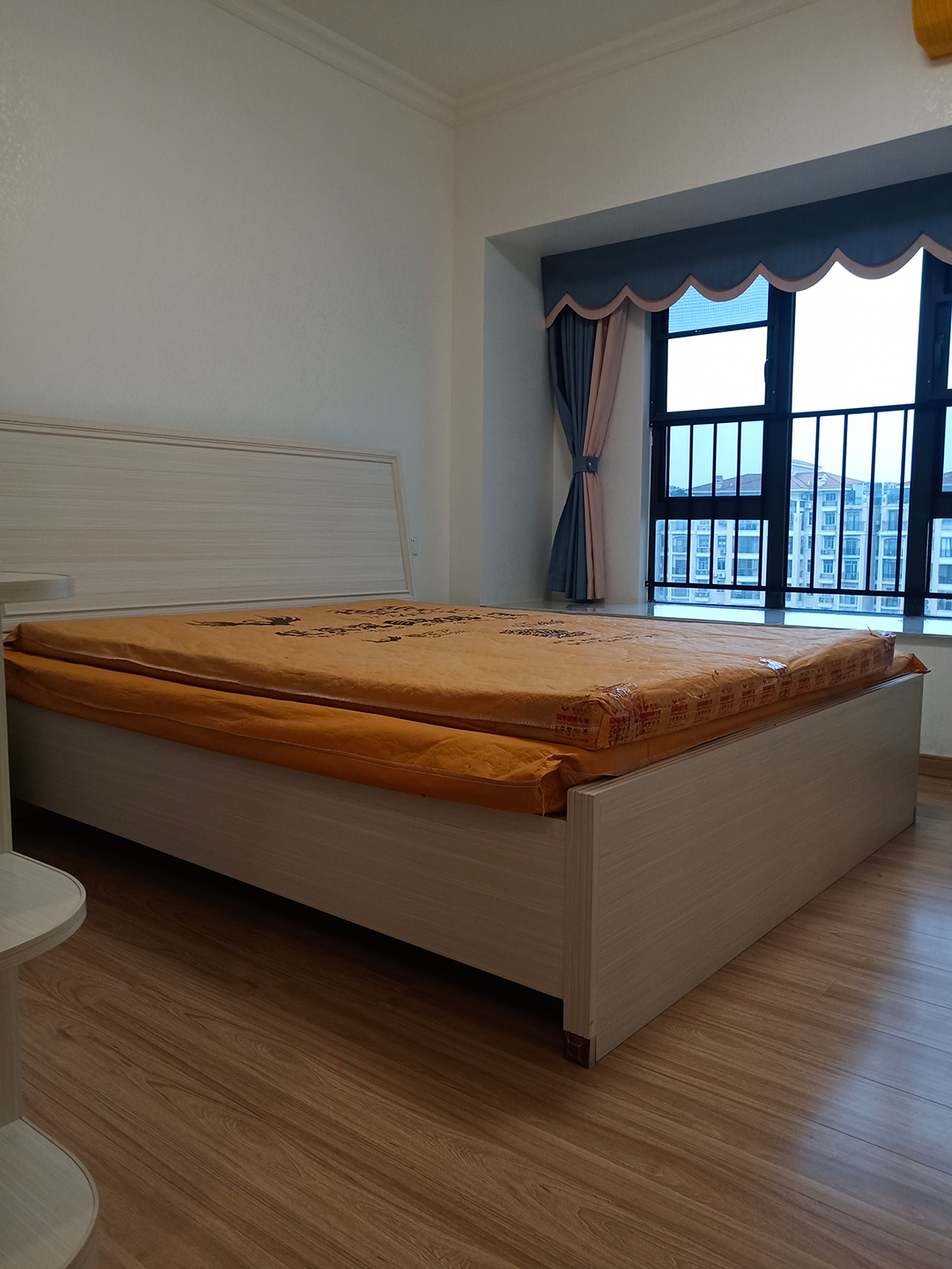 主臥做了一張全鋁床、2床頭柜、一個移門衣柜和一個梳妝臺,顏色與整屋風(fēng)格一致是北歐書香桐柜體和PET高光蜂窩板極簡門板,白色系家具搭配原木色地板非常溫馨舒適。