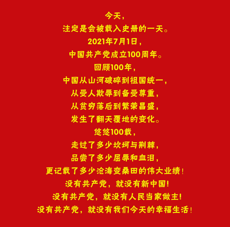 最后,歐格美鋁業(yè)、鋁師傅全鋁家居全體同仁祝偉大的中國共產(chǎn)黨: