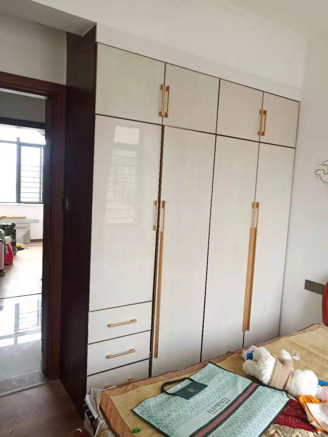 客房衣柜也是輕奢風(fēng)格,白色系柜門搭配金色大拉手,簡約大氣有質(zhì)感。父母過來小住,或者有客人留宿也非常方便。