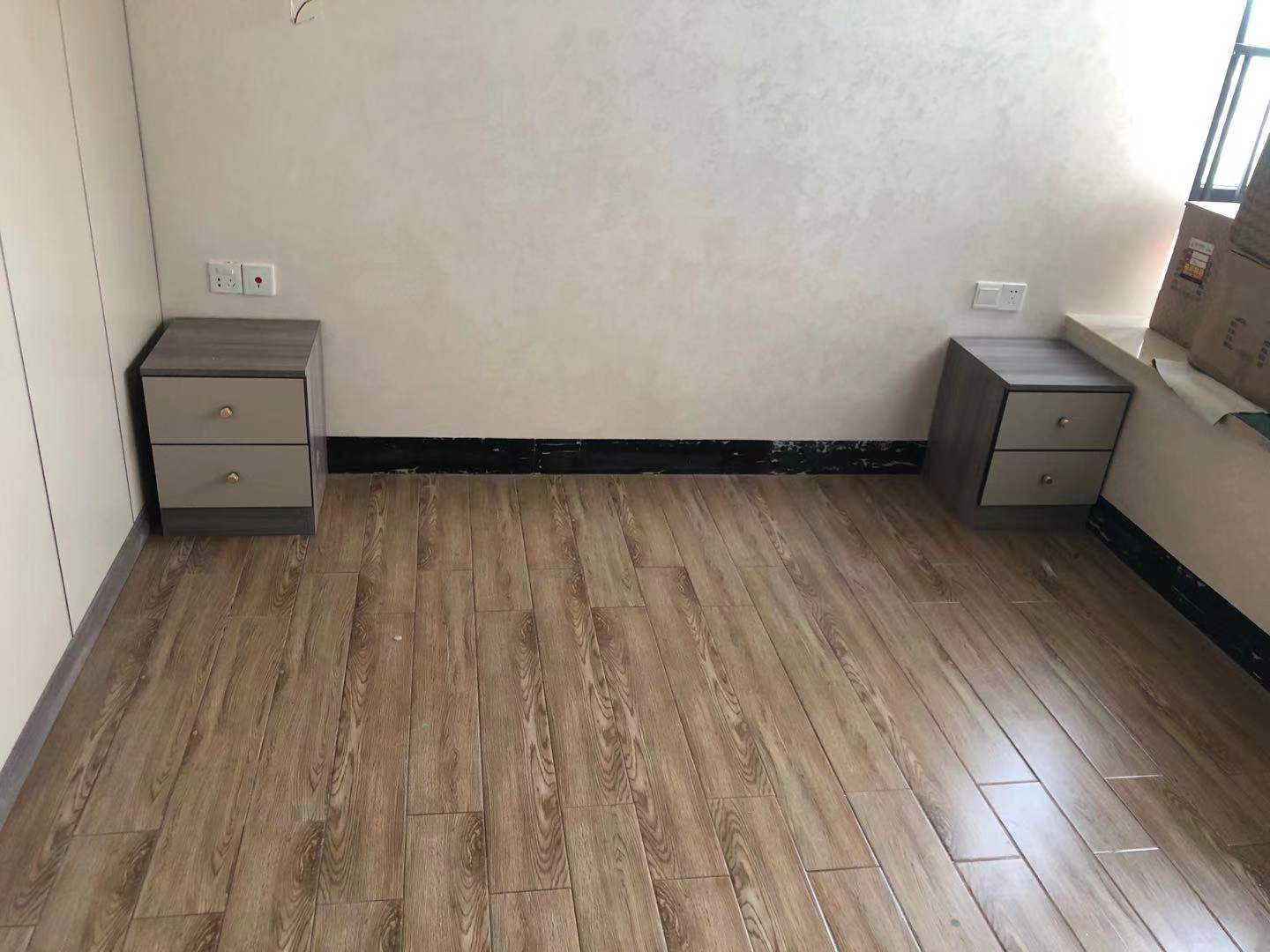 主臥還定做了兩個(gè)全鋁床頭柜,床頭柜顏色也是北歐松木灰搭配膚感卡其門板。