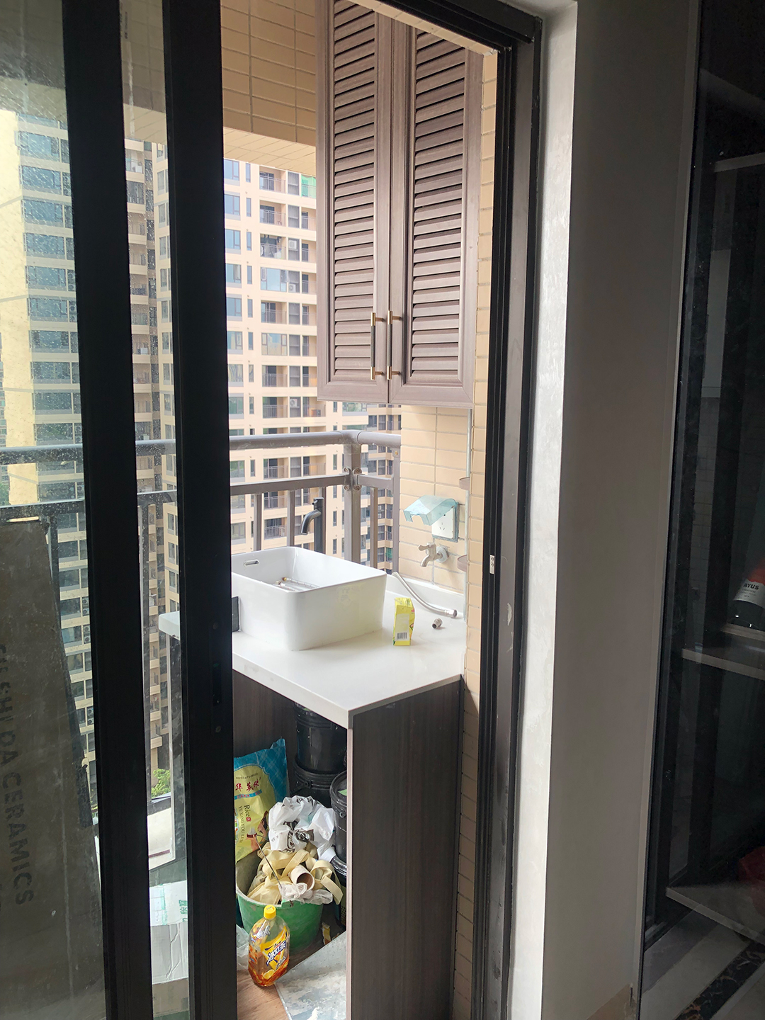 這是陽臺另一邊的儲物柜,柜體風(fēng)格與整屋一致,整體和諧美觀。