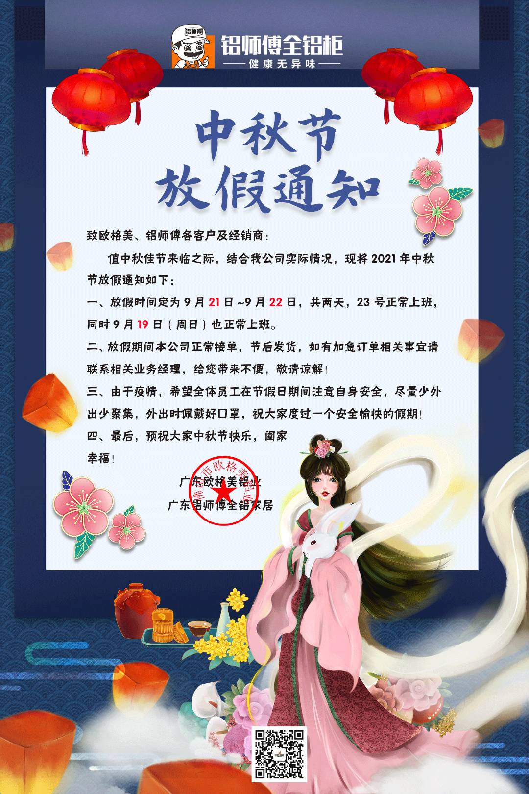 值中秋佳節(jié)來臨之際,結(jié)合我公司實(shí)際情況,現(xiàn)將2021年中秋節(jié)放假通知如下: