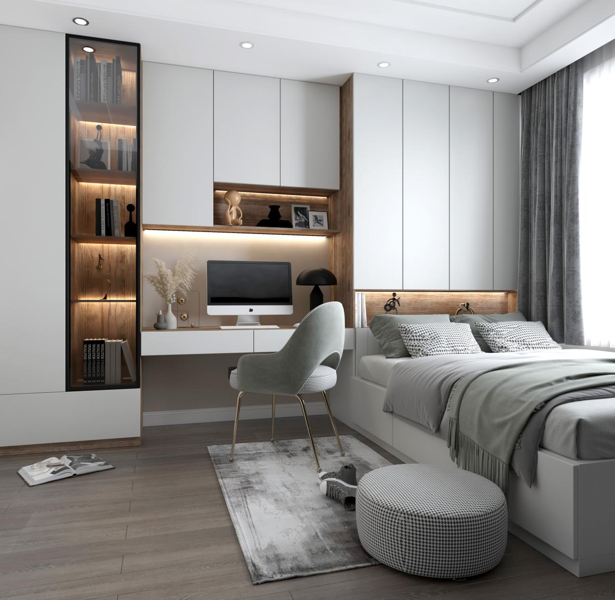我能想到最浪漫的事,就是和你睡一輩子,一抹純白碰撞出空間的跳躍感,與靜立床頭的衣柜對比鮮明,但也令整個臥室愈顯柔和寧靜。躺在舒適柔軟的床上,與愛人互道晚安,漸入睡夢中的童話,這就是向往的生活。