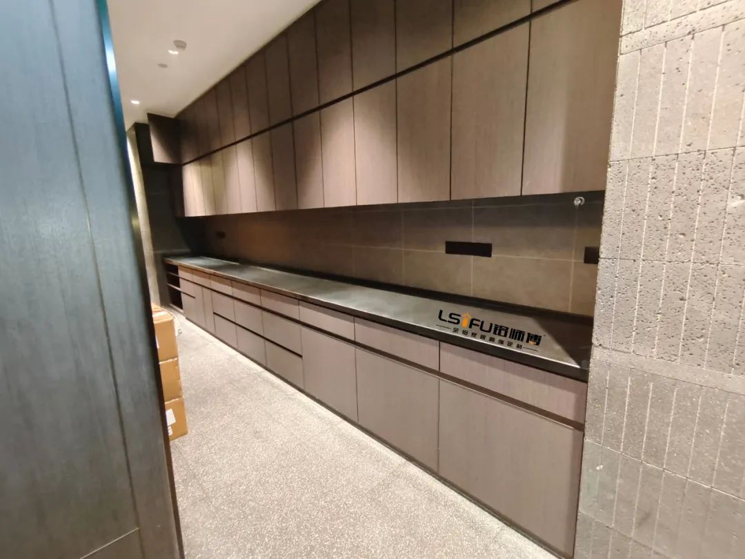 廣州酒家定制的款式是餐邊柜和櫥柜,因為酒家的裝修風(fēng)格偏中式風(fēng),所以在搭配顏色也顯得沉穩(wěn)大氣。
