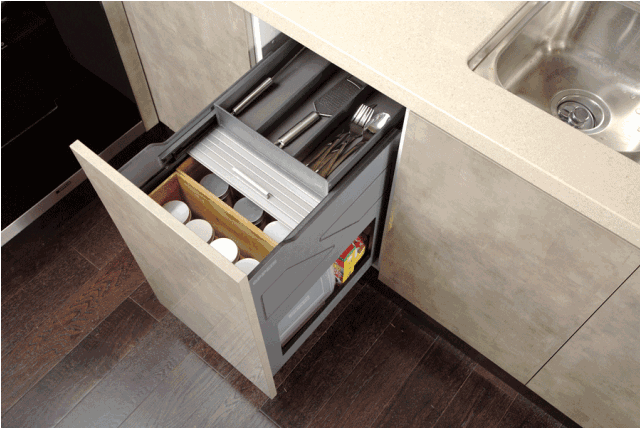 抽屜導(dǎo)軌的重要性僅次于鉸鏈。質(zhì)量不好的滑軌,時(shí)間一長(zhǎng)推拉艱難不說,分分鐘還會(huì)“出軌”給你看。如果是帶阻尼的滑軌,即使用力推也不怕,靜音的同時(shí)還會(huì)對(duì)櫥柜內(nèi)的廚具起到保護(hù)作用,性價(jià)比更高哦。