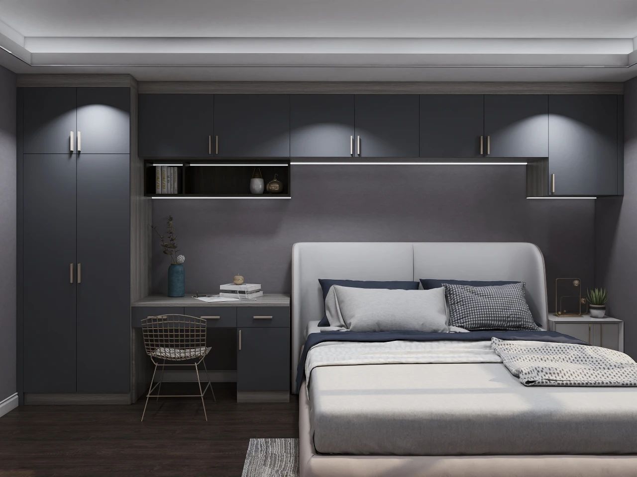 大臥室可選2-3種顏色搭配,小臥室建議選用單色,盡量不要讓空間產(chǎn)生擁擠感。淺藍、淺綠等色調(diào)以及灰色系床品對睡眠更有幫助。