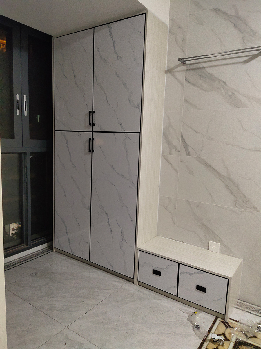 飄窗下方做小矮柜,也叫飄窗柜,柜子儲(chǔ)物,上方鋪軟墊抱枕方便休憩,一舉兩得。