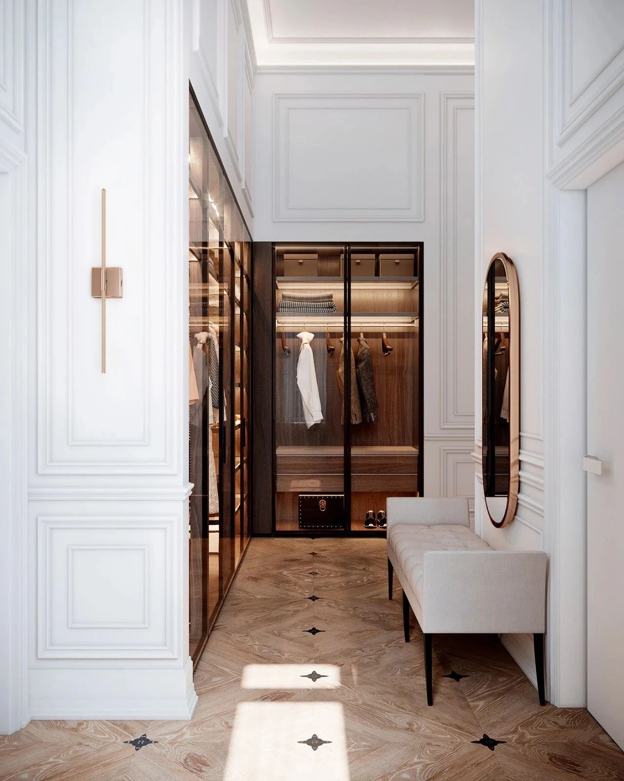 沒有一個女孩不想要衣帽間吧?走廊墻面空間足夠且非承重墻的情況下,定制一個入墻式衣帽間,既不占用過道空間,又能存放各種心愛美衣,簡直不要太爽了!