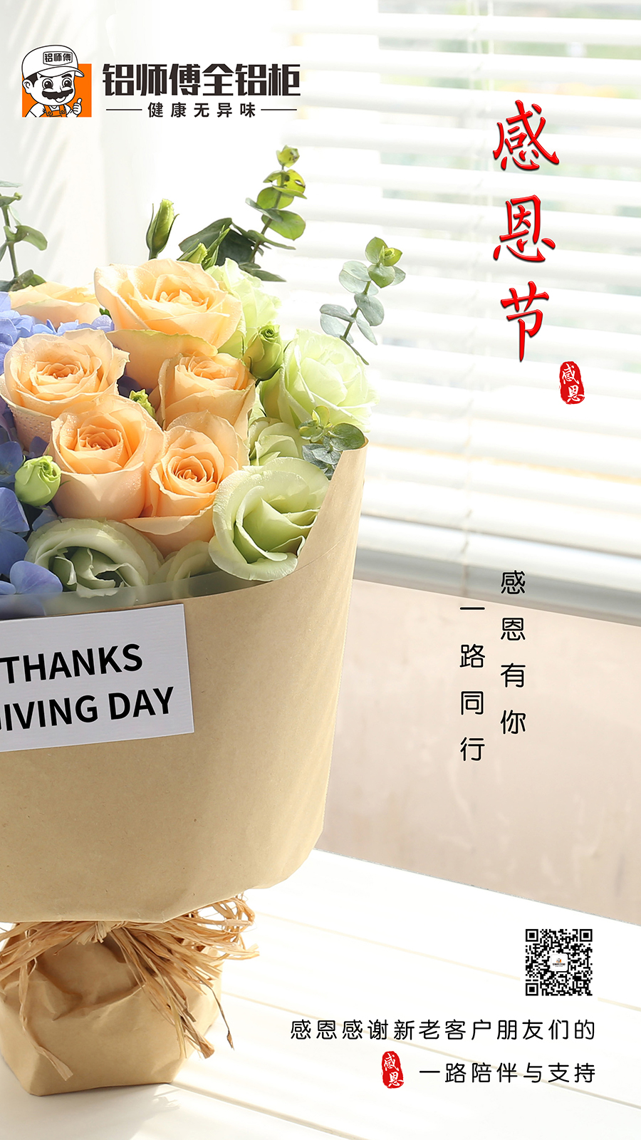 今天是11月的第四個(gè)星期的星期四——感恩節(jié), 過(guò)去的一年感恩有你,一路同行,感謝新老客戶(hù)朋友們對(duì)歐格美鋁業(yè)鋁師傅全鋁家居的一路相伴與支持!