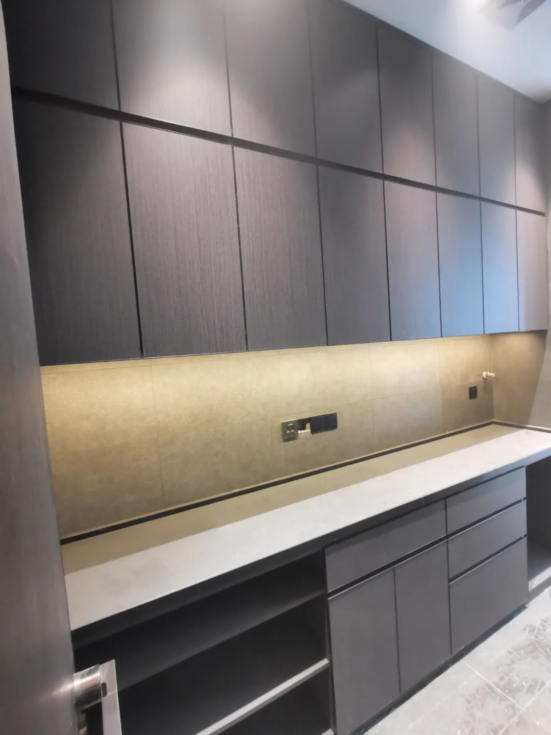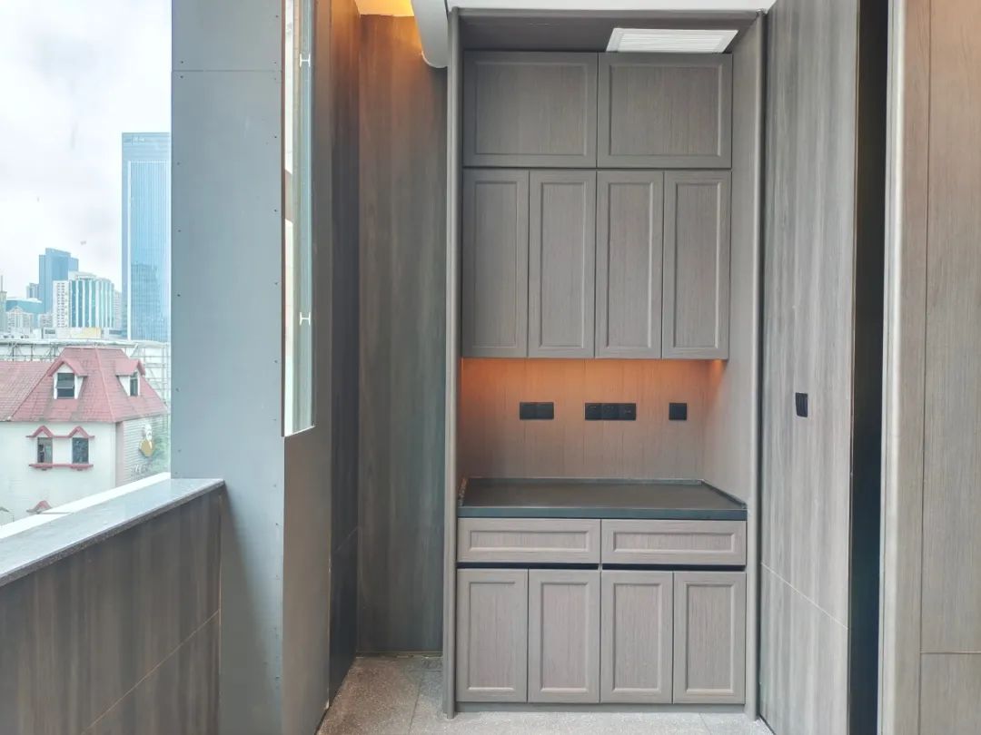 柜門設(shè)計的是隱形免拉手,一來防止開關(guān)夾傷,二來隱藏式設(shè)計顏值和實用并存,由此可見設(shè)計師的心思細(xì)膩。