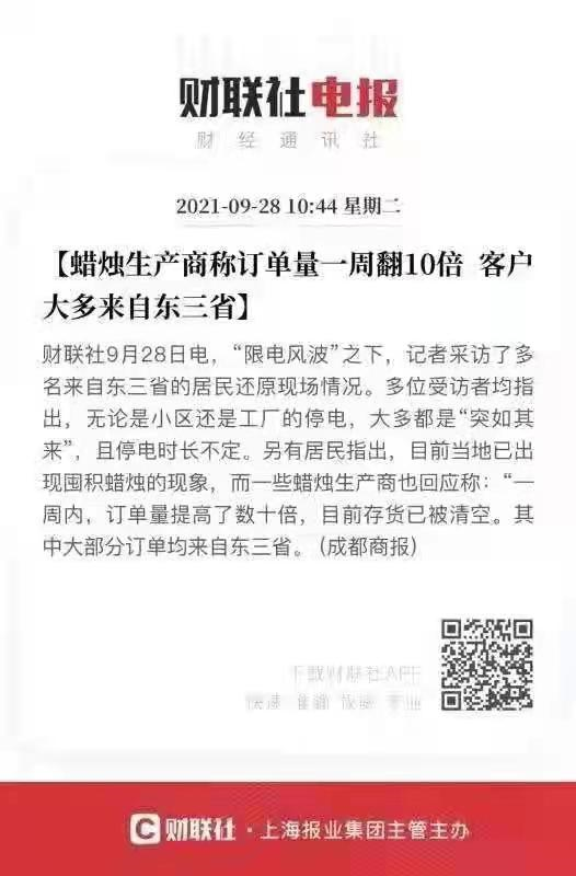 32、剛剛看到一條新聞,蠟燭生產(chǎn)商稱,最近一周訂單量翻了10倍……